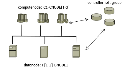 图 1. 1-1 图中 C1-CNODE1 至 C1-CNODE3 为计算节点,P1-DNODE1 至 P3-DNODE1 为数据节点。