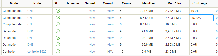 计算节点监控的关键运行时参数主要是内存、连接数。如何避免个别 session 占用过多内存,而导致其他 session OOM,是运维管理上的重点。