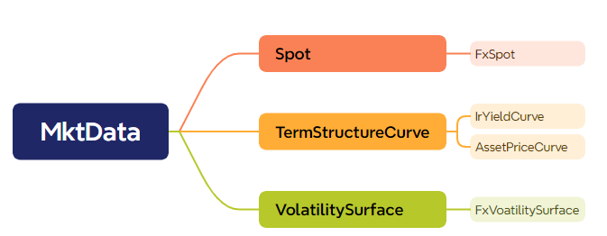 金融工具的定价需要用到即期/曲线/曲面等市场数据,DolphinDB 的 MktData 类是对市场数据的抽象,目前支持的市场数据都继承自 MktData 基类,目前支持的市场数据类型如下:
