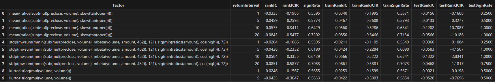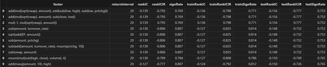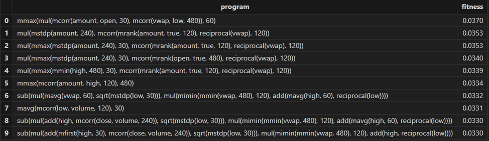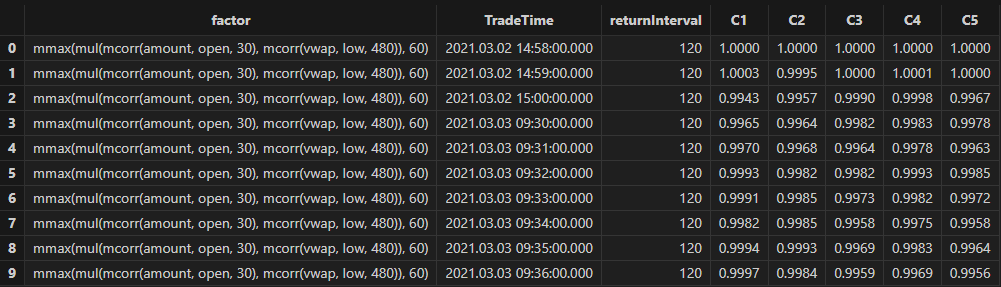 | 因子表达式相关系数均值阈值 | corrThreshold | 0.7 |