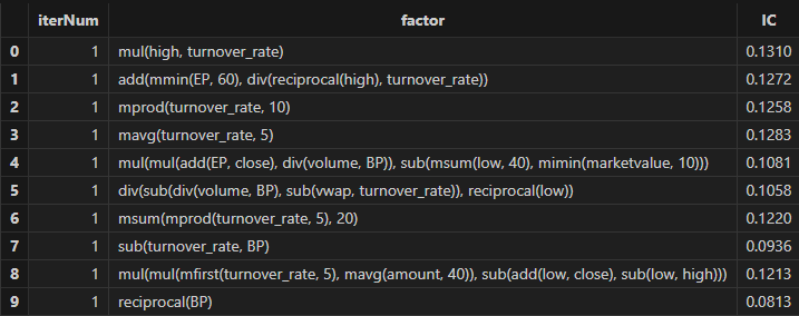returnNum = 100 // 每次返回适应度最优因子的数量